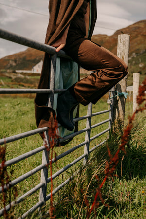 Our Éire trousers are reminiscent of Ireland and the beauty of our Island, of the joy and vitality of bright, everlasting green fields, and reminds cherish our rich heritage. Bloom with grace while wearing this special creation. Crafted from carefully sourced deadstock, each piece gives new life to fabric that would otherwise go to waste. With its soft sheen and graceful drape, this satin carries the beauty of luxury while honouring a more mindful way forward.