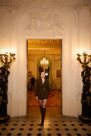 • 'Our Land' Skirt is crafted from Irish Heather. Irish Heather wool is born of our land, gathered from a blend of 40% international and 60% Irish sheep, spun with care, and woven in Ireland. Its softly heathered texture, flecked with shifting tones, mirrors the wild hills and untamed heather of our home. Natural, renewable, and enduring, it is a fabric that carries both the resilience of Irish craft and the quiet poetry of the landscape itself.