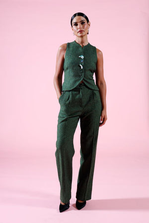 It is possible to reimagine and nurture a sense of wonder in the natural world by observing and reconnecting with the source that is nature. Our 'Pledge to Protect' Straight Leg Trousers are made from a green blend of Irish Tweed inspired by the resilient shoots of grass within the limestone pavements of the Burren
