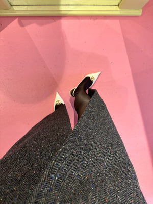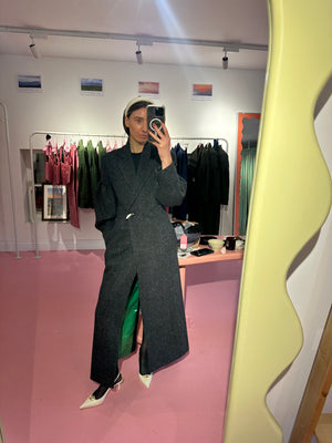 Our Burren inspired grey wool with colourful flecks has amounted to the perfect longline winter coat. Aspire to radiate resilience and beauty like the Burren's flora and flourish in your own individuality and irresistible grace