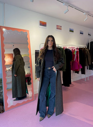 Reimagined, our Burren inspired green wool coat with colourful flecks has amounted to the perfect winter piece Aspire to radiate resilience and beauty like the Burren's flora and flourish in your own individuality and irresistible grace