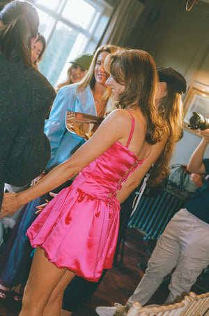 Details: Puff ball mini dress with removable straps and Éire embroidered close to the heart