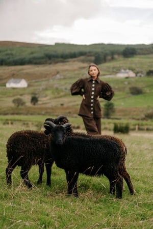 'Our Land' Blazer is crafted from Irish Heather. Irish Heather wool is born of our land, gathered from a blend of 40% international and 60% Irish sheep, spun with care, and woven in Ireland. Its softly heathered texture, flecked with shifting tones, mirrors the wild hills and untamed heather of our home. Natural, renewable, and enduring, it is a fabric that carries both the resilience of Irish craft and the quiet poetry of the landscape itself.
