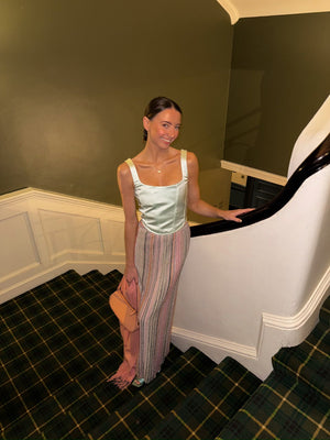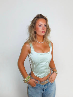Our Éire corset is reminiscent of Ireland and the beauty of our Island, of the joy and vitality of bright, everlasting green fields, and reminds cherish our rich heritage. Bloom with grace while wearing this special creation. Crafted from Acetate, a responsibly sourced wood pulp which transforms into a fabric with a silky, fluid drape. Lightweight, breathable, and biodegradable, it carries both elegance and ease, moving gently with the body while treading lightly on the earth.