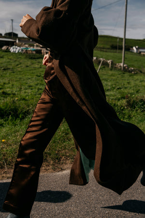 Our Éire trousers are reminiscent of Ireland and the beauty of our Island, of the joy and vitality of bright, everlasting green fields, and reminds cherish our rich heritage. Bloom with grace while wearing this special creation. Crafted from carefully sourced deadstock, each piece gives new life to fabric that would otherwise go to waste. With its soft sheen and graceful drape, this satin carries the beauty of luxury while honouring a more mindful way forward.