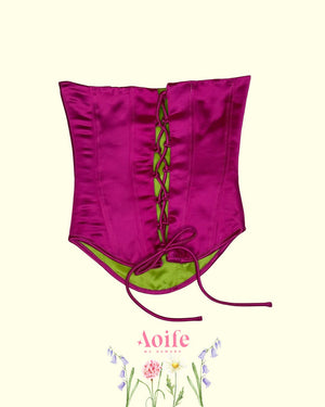 Our This Island corset bears roots in the very soil of our island home. Crafted from Acetate, a responsibly sourced wood pulp which transforms into a fabric with a silky, fluid drape. Lightweight, breathable, and biodegradable, it carries both elegance and ease, moving gently with the body while treading lightly on the earth. Bloom with grace while wearing this special creation.