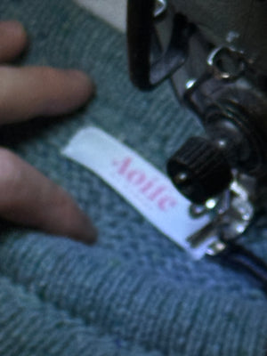 • Details:Teal Irish Woven Wool jumper with pale lilac trim on sleeves,